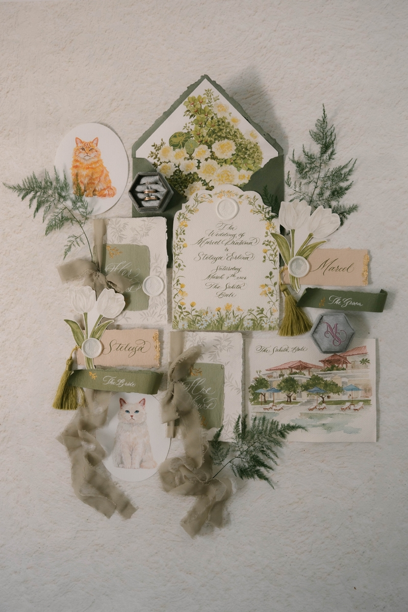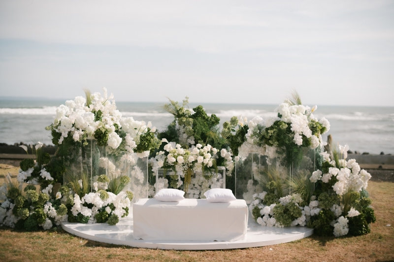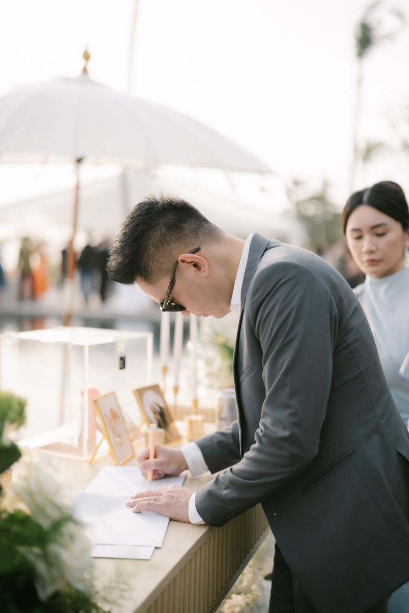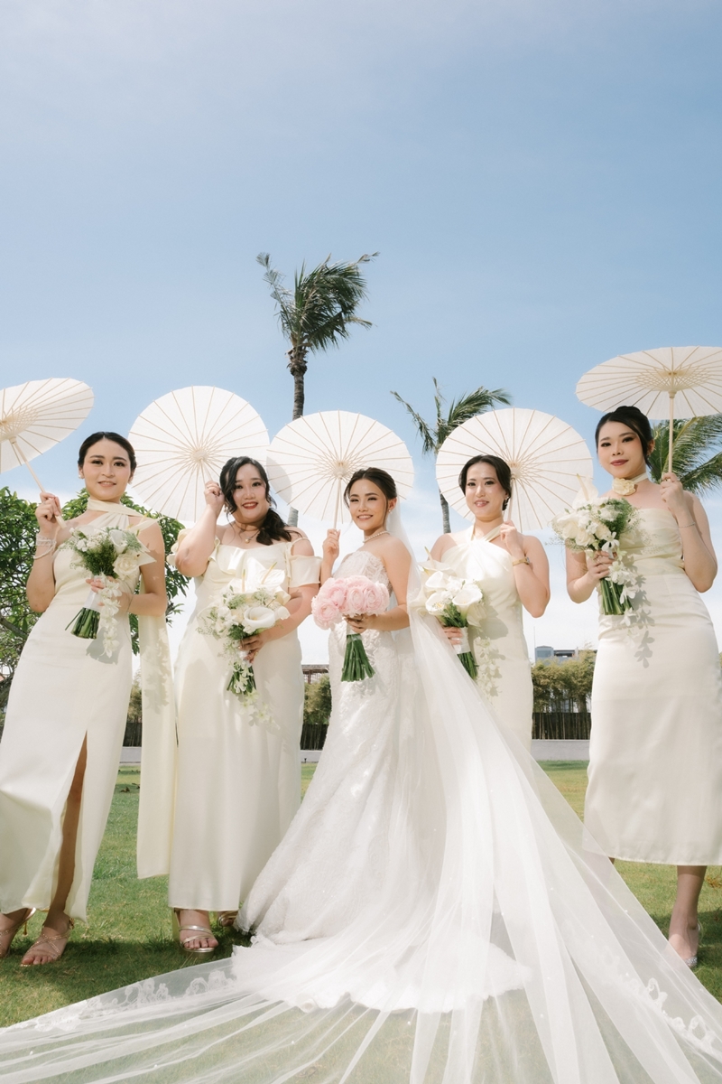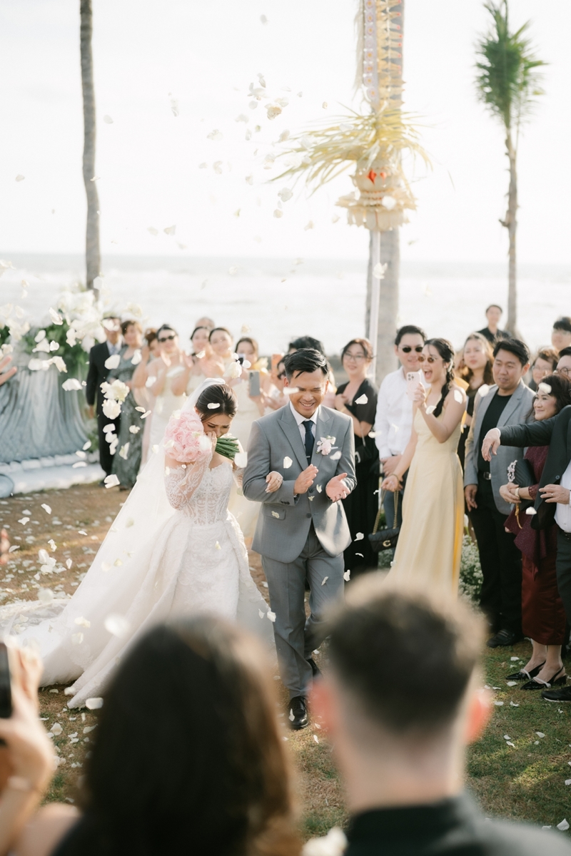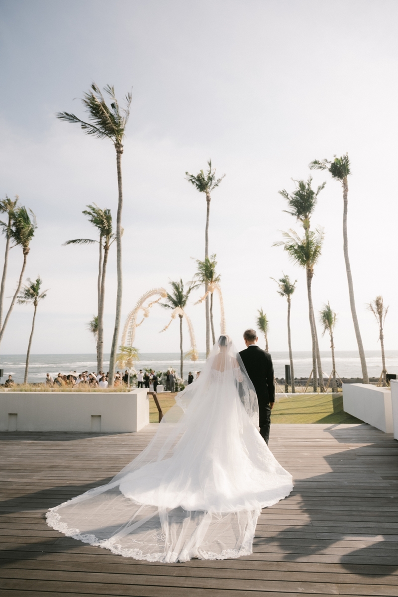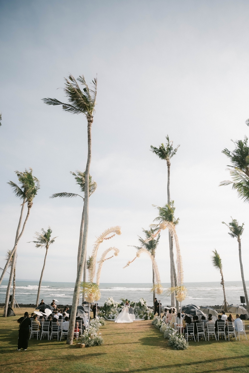 Stelcya & Marcel memilih daerah Tabanan, Bali, menjadi venue untuk mengucap janji suci keduanya, yaitu di Atma Sahita. Sebagai pasangan pertama yang menikah di Atma Sahita, vibes yang ada lebih private & lebih intimate. Suasana alam Tabanan yang tenang bikin wedding Stelcya & Marcel terasa lebih personal & eksklusif. Di tengah nuansa beach wedding yang modern, Stelcya & Marcel membawa unsur Bali lewat hadirnya penjor. Bukan sekedar dekorasi, Penjor melambangkan rasa syukur, doa, dan harapan untuk kehidupan baru yang seimbang dan penuh berkah.