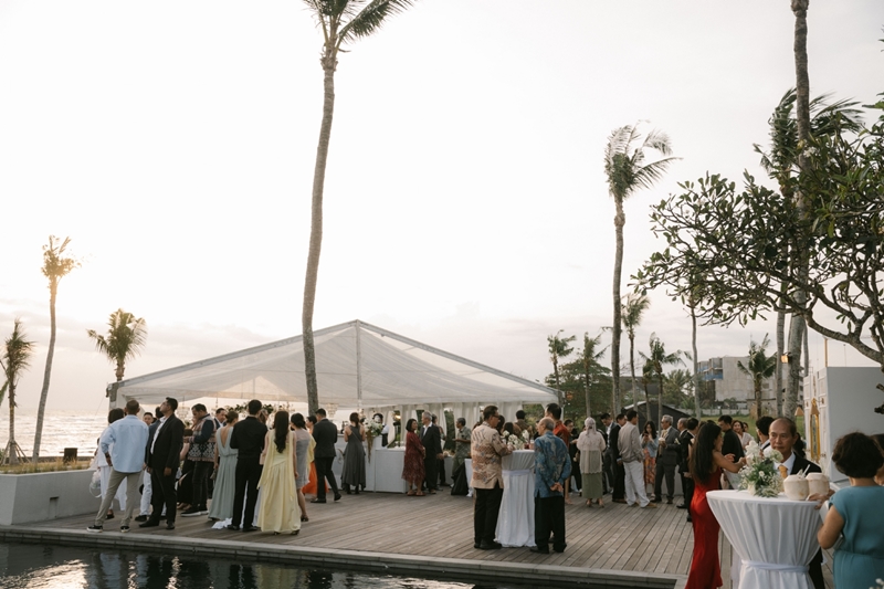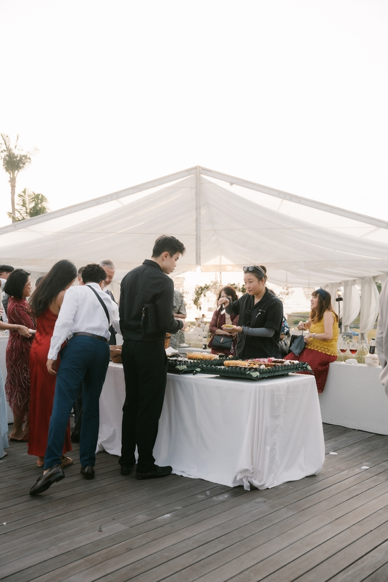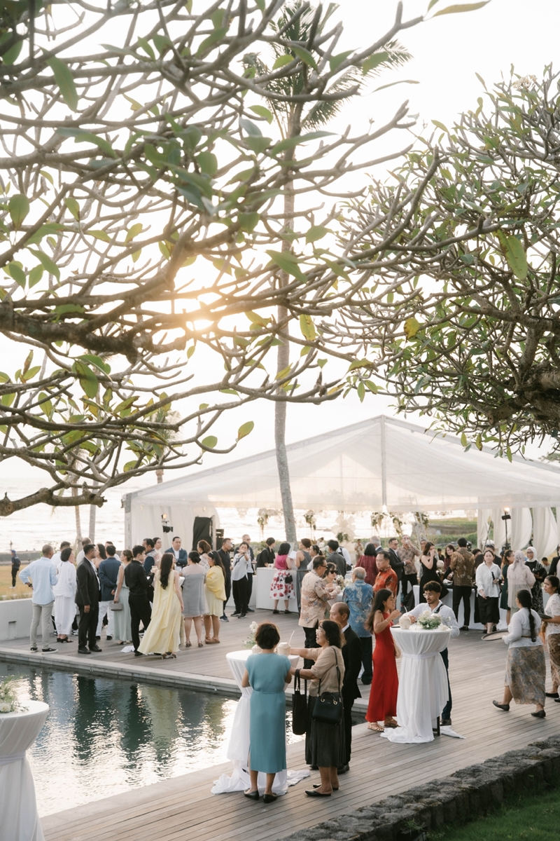 Berbeda dari biasanya, pada wedding Stelcya & Marcel ini, para tamu undangan bukan cuma duduk dan menikmati acara, tapi benar-benar diajak terlibat interaktif dalam acaranya. Selain menikmati indahnya pantai dengan sentuhan lokal, mereka juga bisa mengikuti acara yang playful dan modern dengan momen yang hangat, interaktif, dan penuh energi sepanjang acara. Diantaranya melalui Ring of Bell, Photobox Challenge, Wedding Cake Tiramisu, Traditional Snack Corner & Ice Cream Station dan Tiramisu Cake & Apperol Pouring.